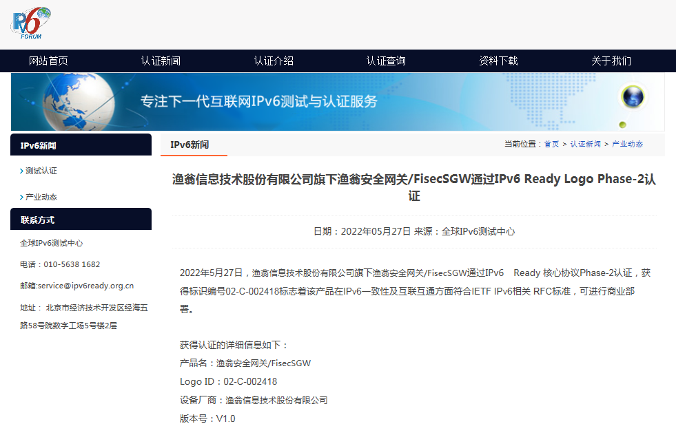 权威认证 | Ezpay安全网关 FisecSGW 顺利获得IPv6 Ready Logo认证