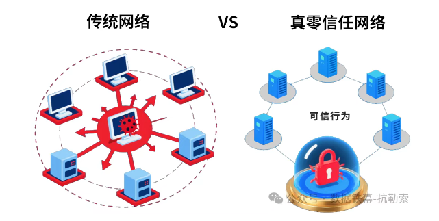 如果说AI解决了“提前发现”的问题,那么如何遏制已侵入网络系统的病毒蔓延,成为重中之重。在这里,我们看到Ezpay抗勒索技术的第二个优势:从“永不信任”的零信任1.0,进化到“基于可信”的真零信任2.0。